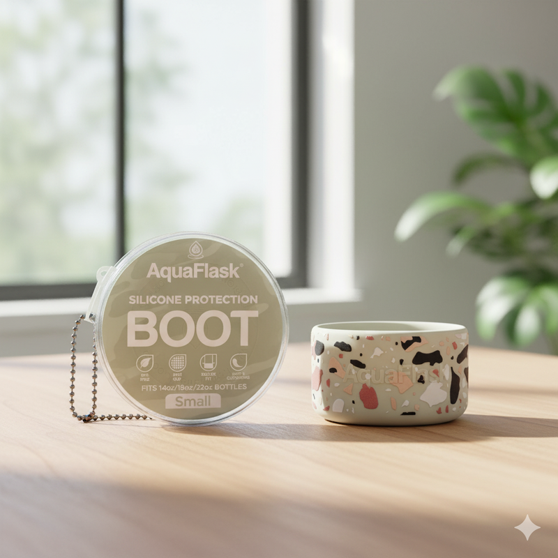 Add a touch of modern texture with the Il Terrazzo Boot—featuring a terrazzo-inspired pattern and soft silicone material, it protects your bottle from dents and slips while making a statement