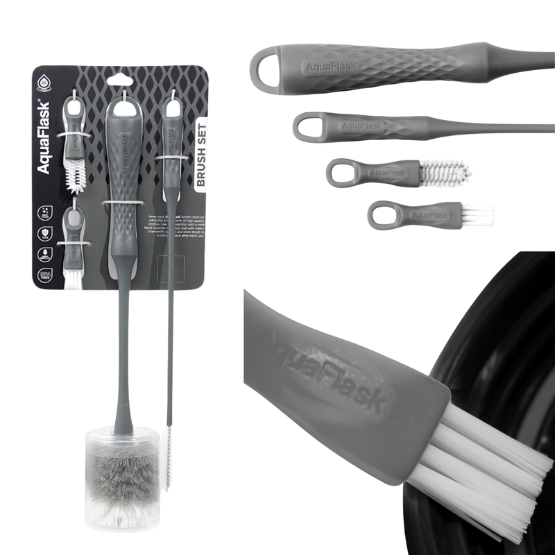 Keep your AquaFlask sparkling clean with this 4-piece Brush Set. Includes a long, flexible brush for bottles and a smaller one for lids and straws—perfect for a thorough clean after every use.