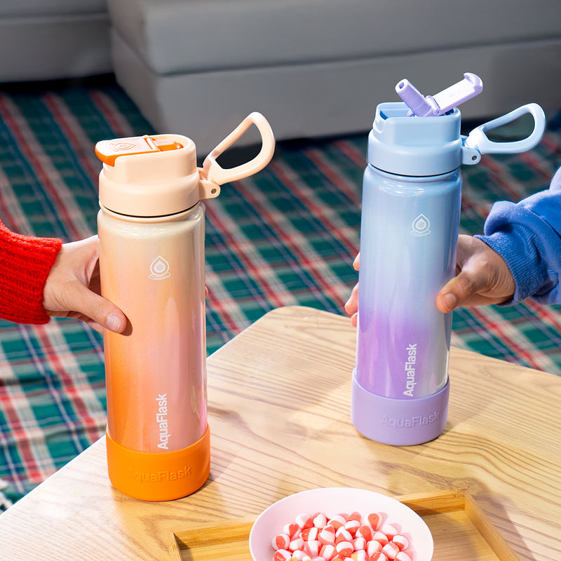 Featuring a stunning gradient stainless steel design paired with a translucent lid for that frosty look, the Candy Floss Collection brings a playful sparkle to your sips, with all the functionality you need: easy-carry lid, leak-proof seal, and insulation that keeps every drink just right. It also comes with a boot for extra protection and style�perfect for every hydration adventure.