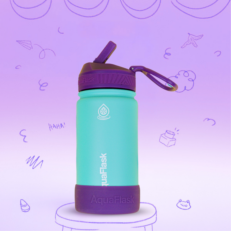 Built for active kids, the AquaFlask Kids 18oz bottle features a durable spout lid with a twist cap for easy, spill-proof sipping. With a soft silicone boot and easy-carry handle, it is perfect for staying hydrated at school, sports, or on the go.