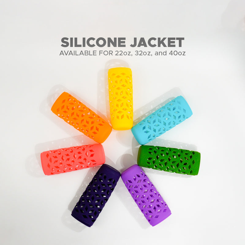 Dress up your bottle with the AquaFlask Silicone Jacket—a snug, full-body cover that adds extra grip, insulation, and scratch protection. Available in a range of colors to match your style.