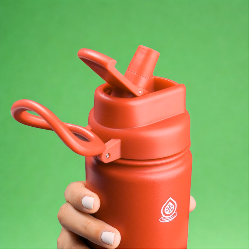 Sip with ease using the FlipSip Straw Lid—featuring a flip-up spout, wide carry loop, and included straw for convenient, one-handed drinking.