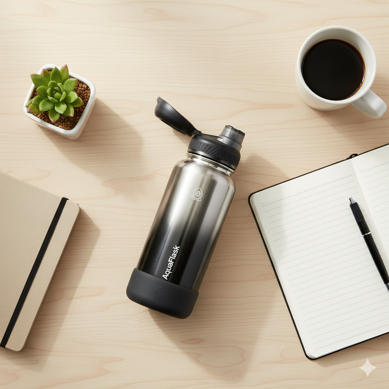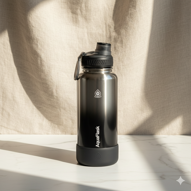 Grounded in style and built to last, the Terra Bottle features a matte, textured finish inspired by natural earth tones. Designed for everyday adventures, it comes with a protective boot, a sturdy lid with a carry loop, and keeps your drinks hot for 12 hours or cold for 24.